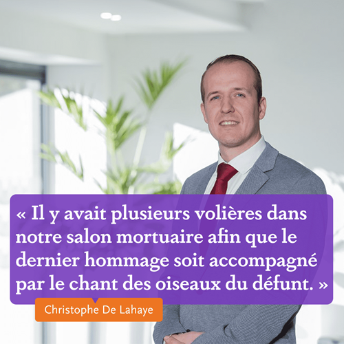 « Le défunt aimait les oiseaux et possédait plusieurs volières. Nous les avons amenés dans le salon mortuaire de notre funérarium, afin que le dernier hommage soit accompagné par le chant de ces oiseaux qu’il aimait tant. »