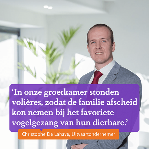 Ook DELA-uitvaartondernemer Christophe De Lahaye van Uitvaartzorg Georis organiseerde een persoonlijke uitvaart, waarbij huisdieren een centrale rol speelden.