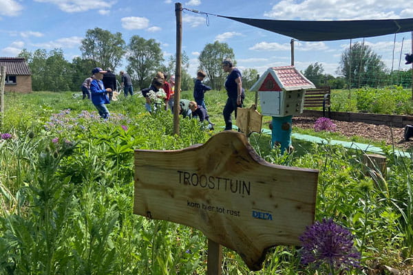 Dien hier jouw aanvraag in“Onlangs hebben we de troosttuin voorgesteld aan de leerlingen van het vierde leerjaar. De kinderen versierden trooststenen en schreven briefjes voor de brievenbus. Het werd een zeer geslaagde namiddag, met plaats voor heel wat kleine én grote verdrietjes. Nogmaals hartelijk dank voor jullie steun!” Claudia